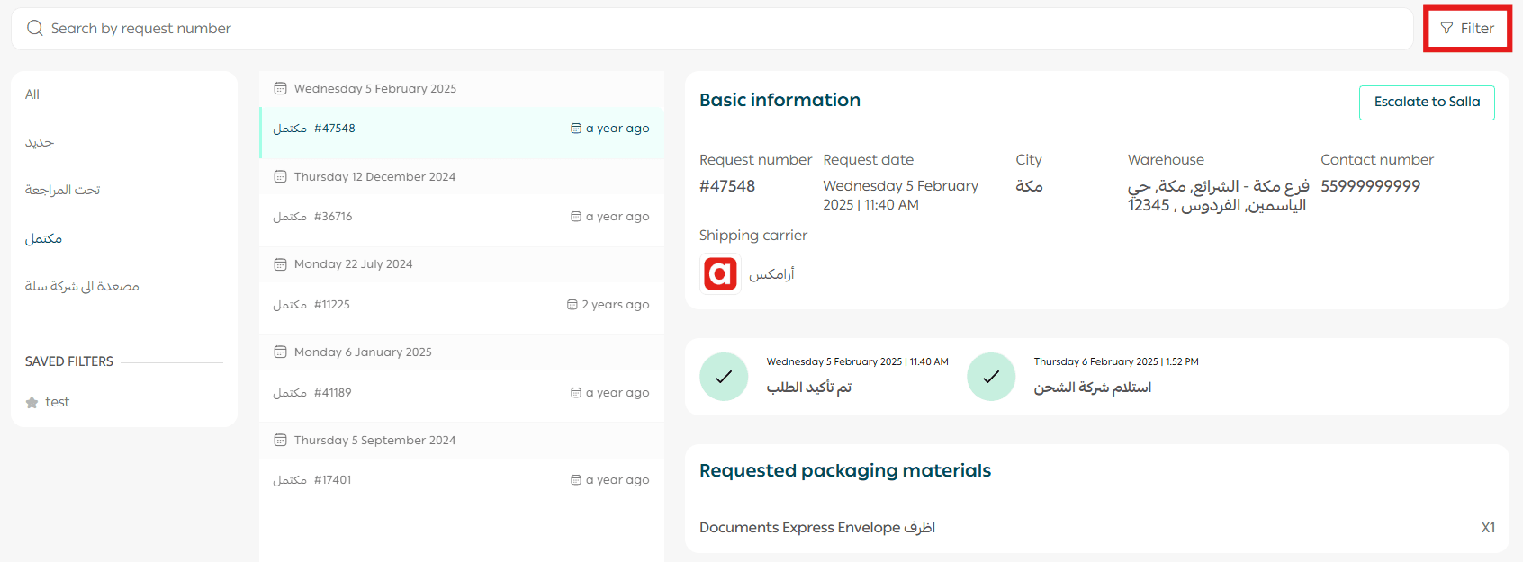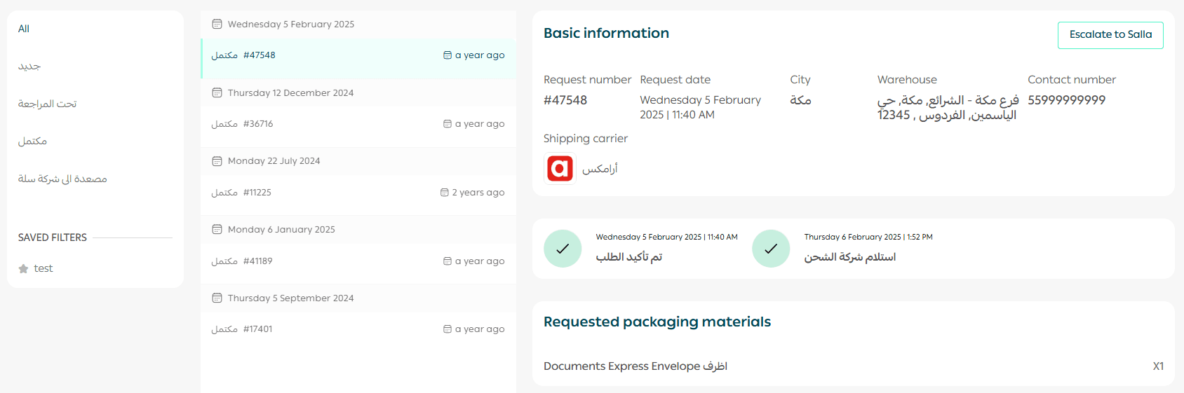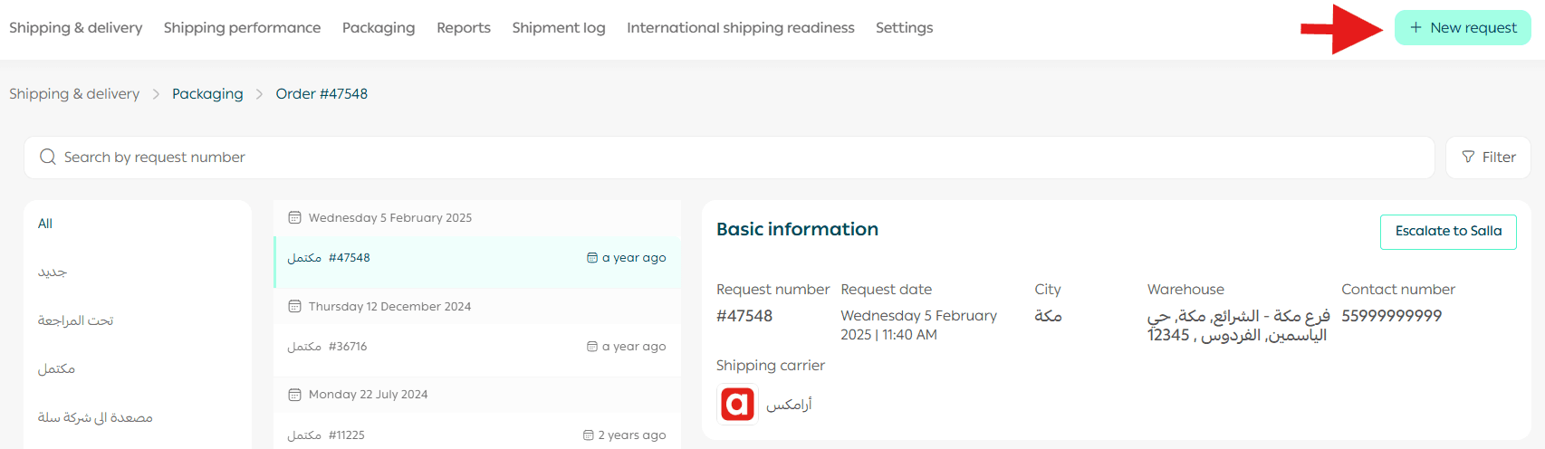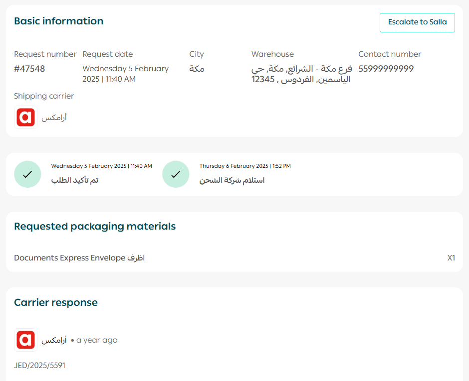Example: If your store shipped 20 orders with Aramex in February, you can request up to 10 packaging material items in your first request of the month. After two weeks, you can submit another request for the same quantity.