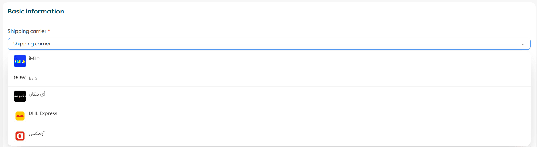 iMile, Shipa, AyMakan, Aramex, DHL, and Salasa. Additional shipping companies will be supported soon.