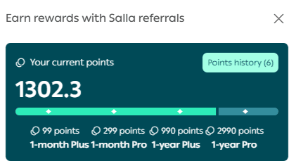 With the Salla Referral Program, every successful referral turns into reward points that you can use to renew or upgrade your store plan at no extra cost.