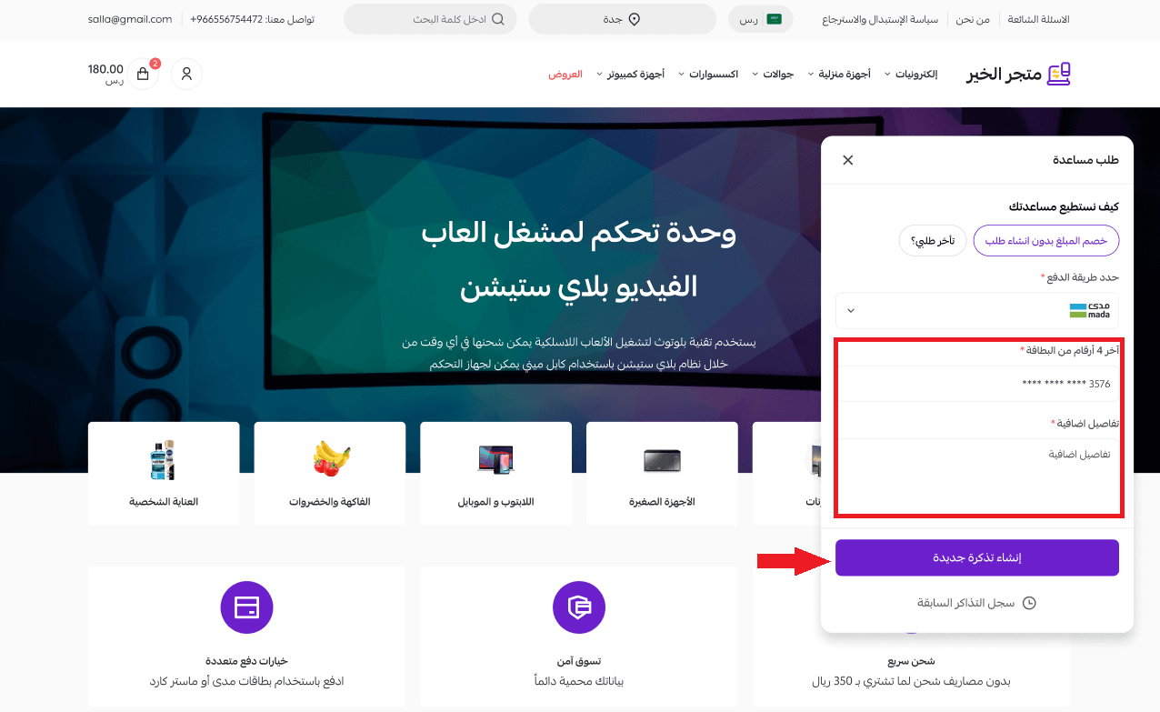 4. Enter the last four digits of the card that was charged, add any additional details if needed, then click Create new ticket.