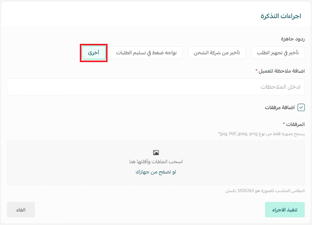 Merchants can also choose Other reply to enter custom notes, attach files, and provide additional information.