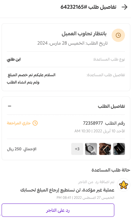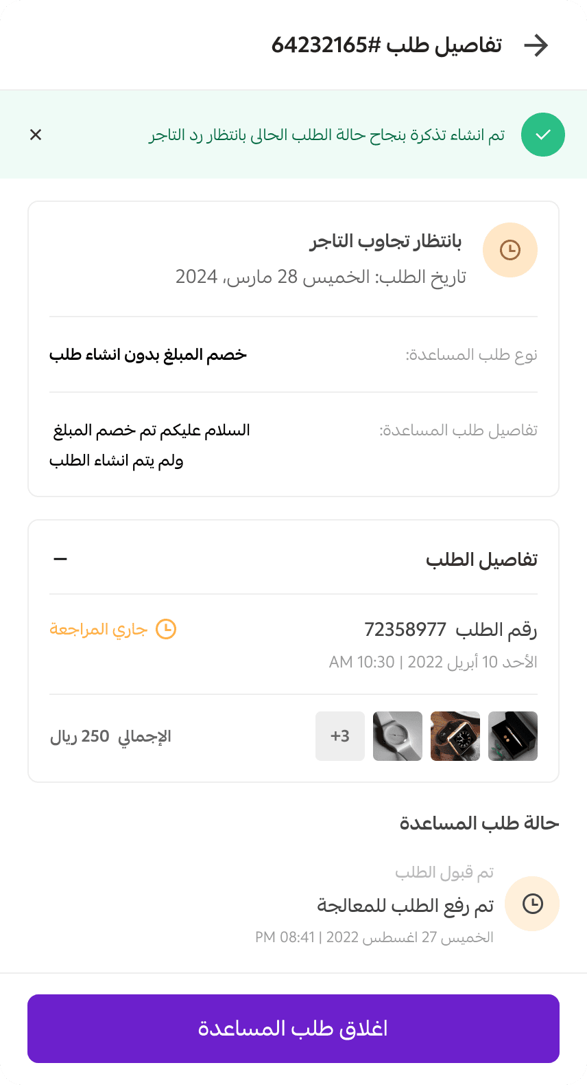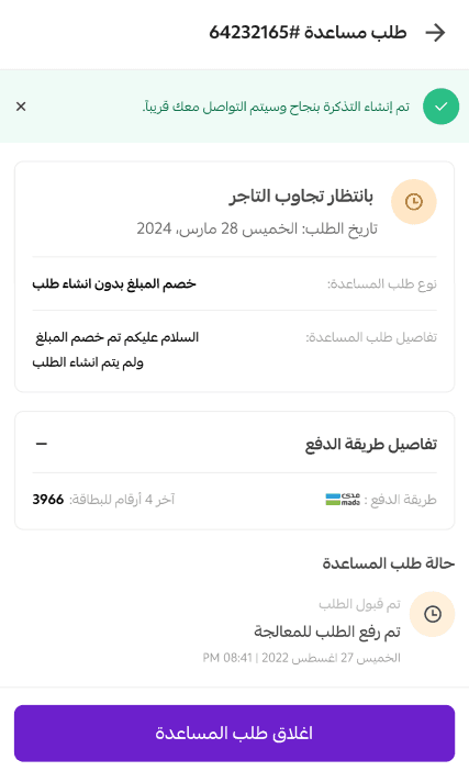 These tickets are sent directly to the Salla team for review and response. No action is required from the merchant or customer.
