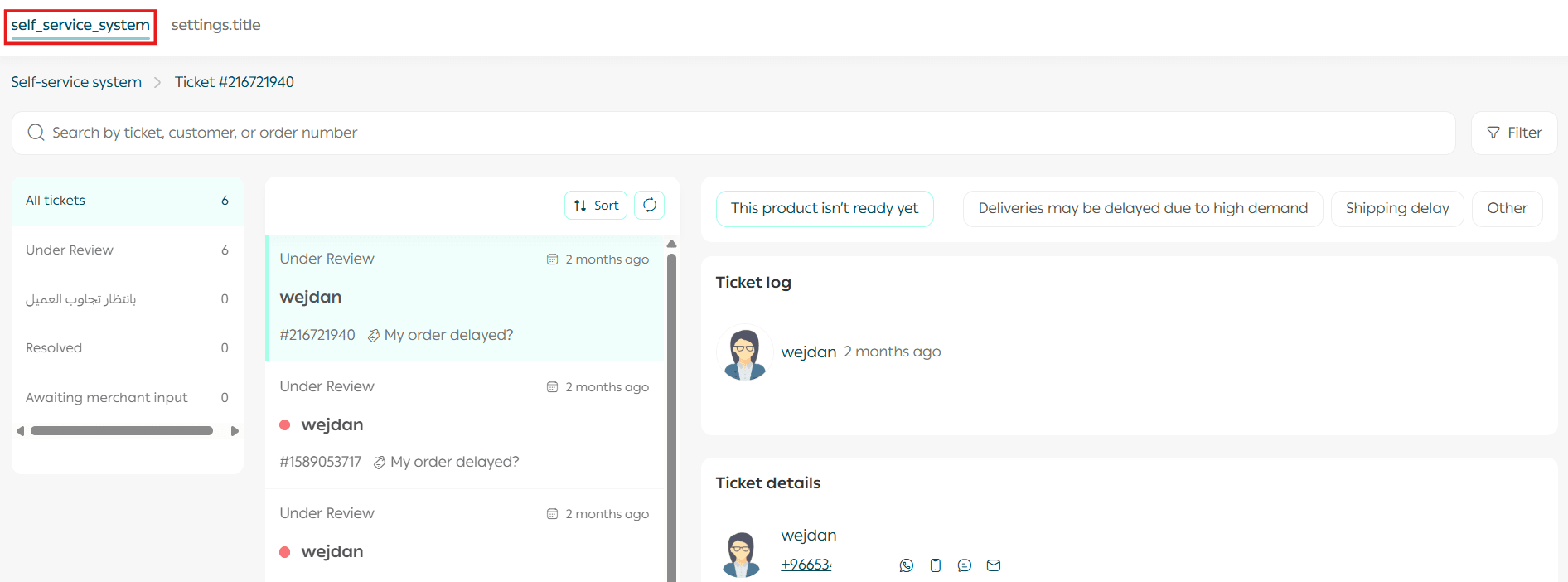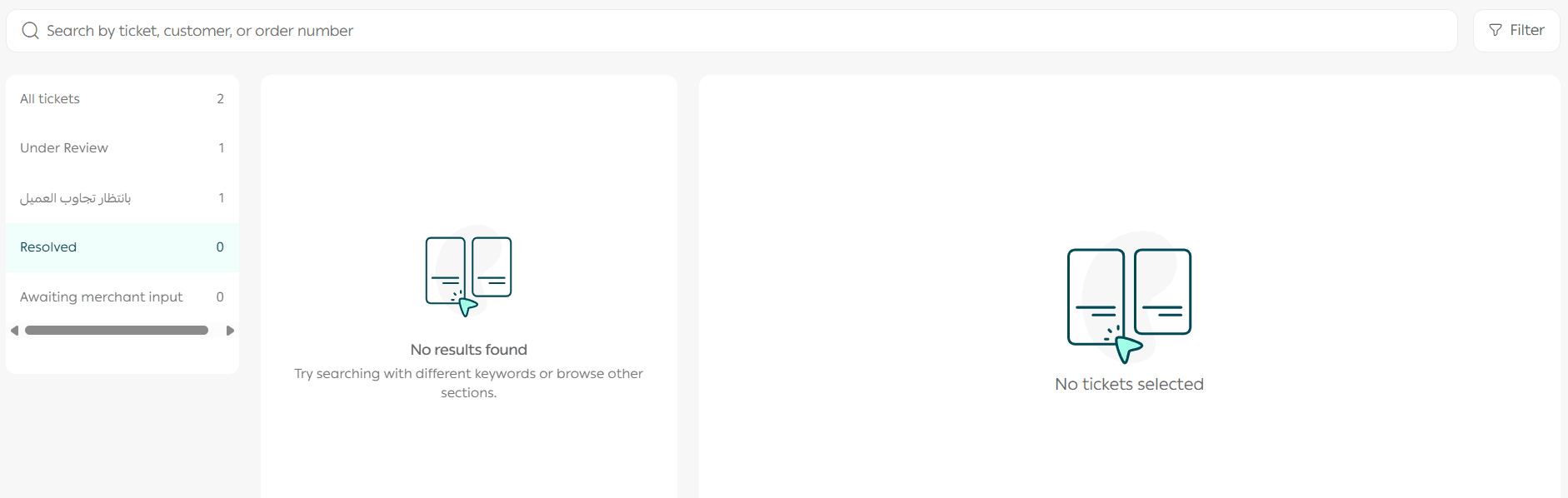 Once one or more tickets exist, merchants can view, manage, and follow up on submitted tickets