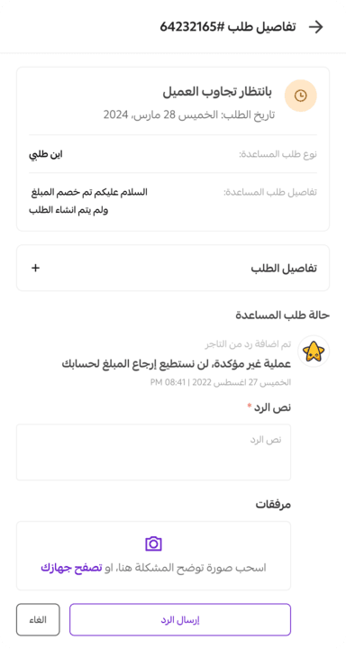 The ticketing system is designed to help customers manage and follow up on their requests. It allows customers to submit tickets, track request status, and attach all required details. The ticketing system acts as a direct communication channel between the customer and the merchant.