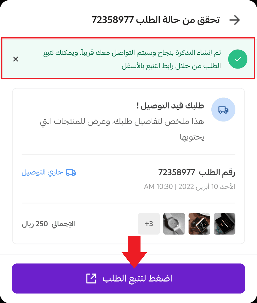 In this case, the customer can track the order without submitting a ticket. A tracking link is sent directly to the customer.