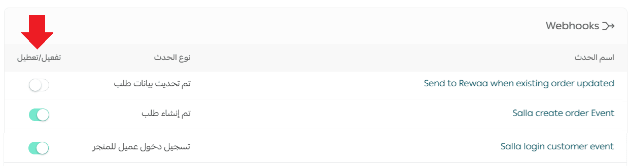 From the Webhooks page, you can easily toggle any webhook event on or off.
