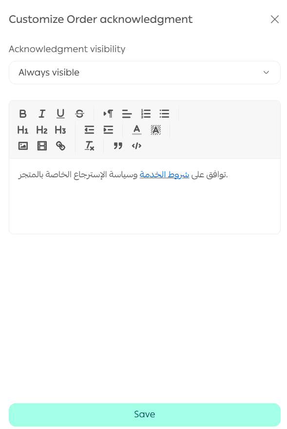 If you want to direct customers to a specific link such as the return policy, highlight the text first, then add the link using the link option.