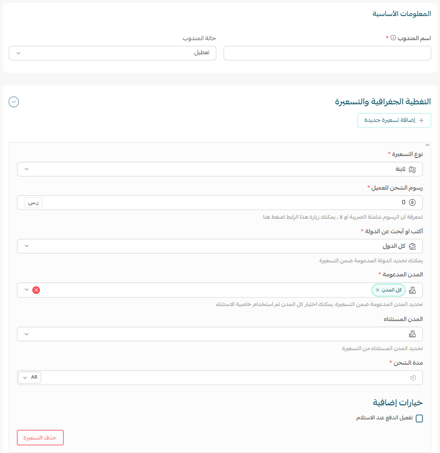 - Supported cities: The cities covered by the company. You can select more than one city.