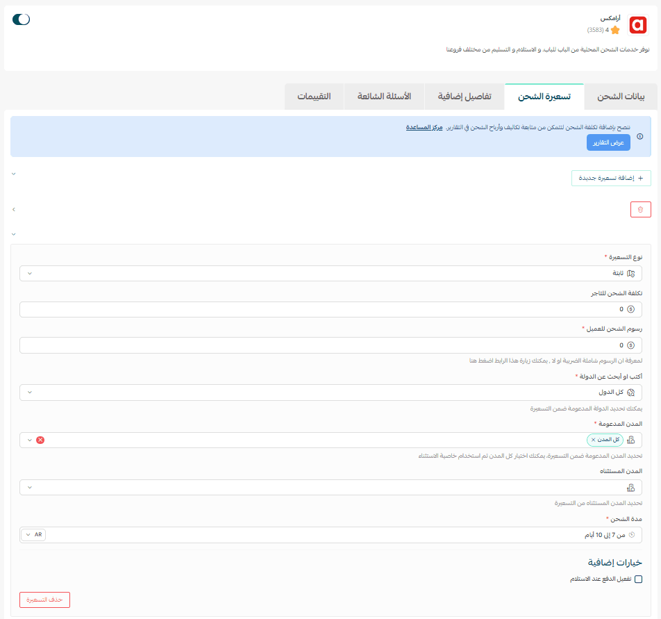 Some stores face challenges in managing shipping companies and selecting the most suitable delivery providers, which can affect the customer experience. Fortunately, Salla’s shipping settings provide flexible solutions for customizing prices and enabling shipping companies efficiently.