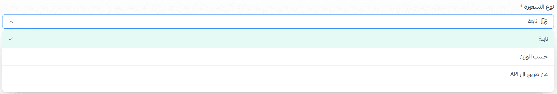 Choose the pricing type whether it is fixed, weight-based, or via API.