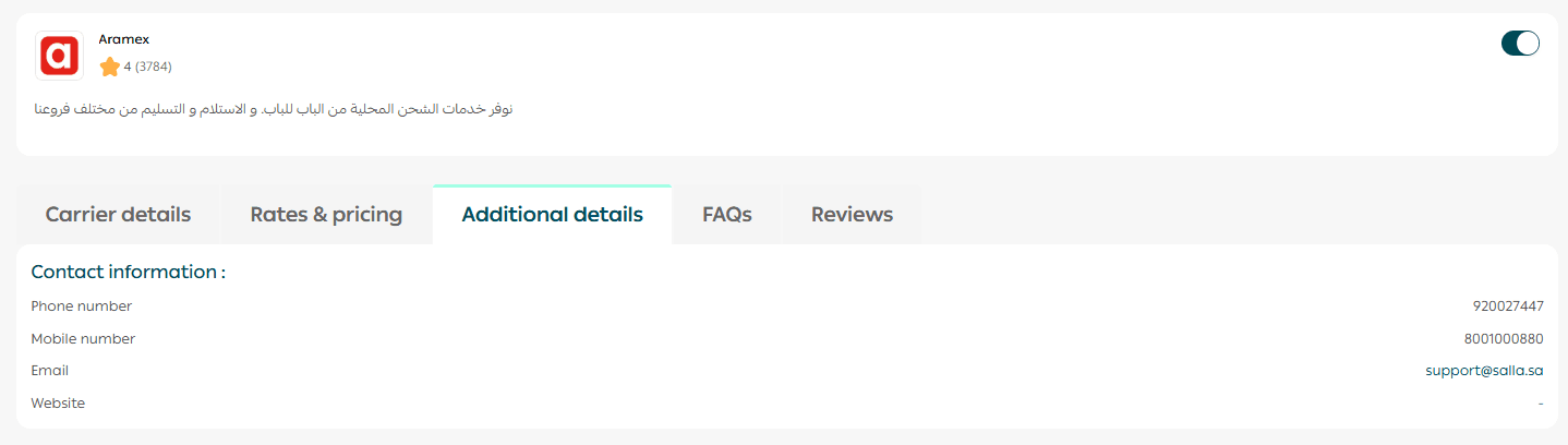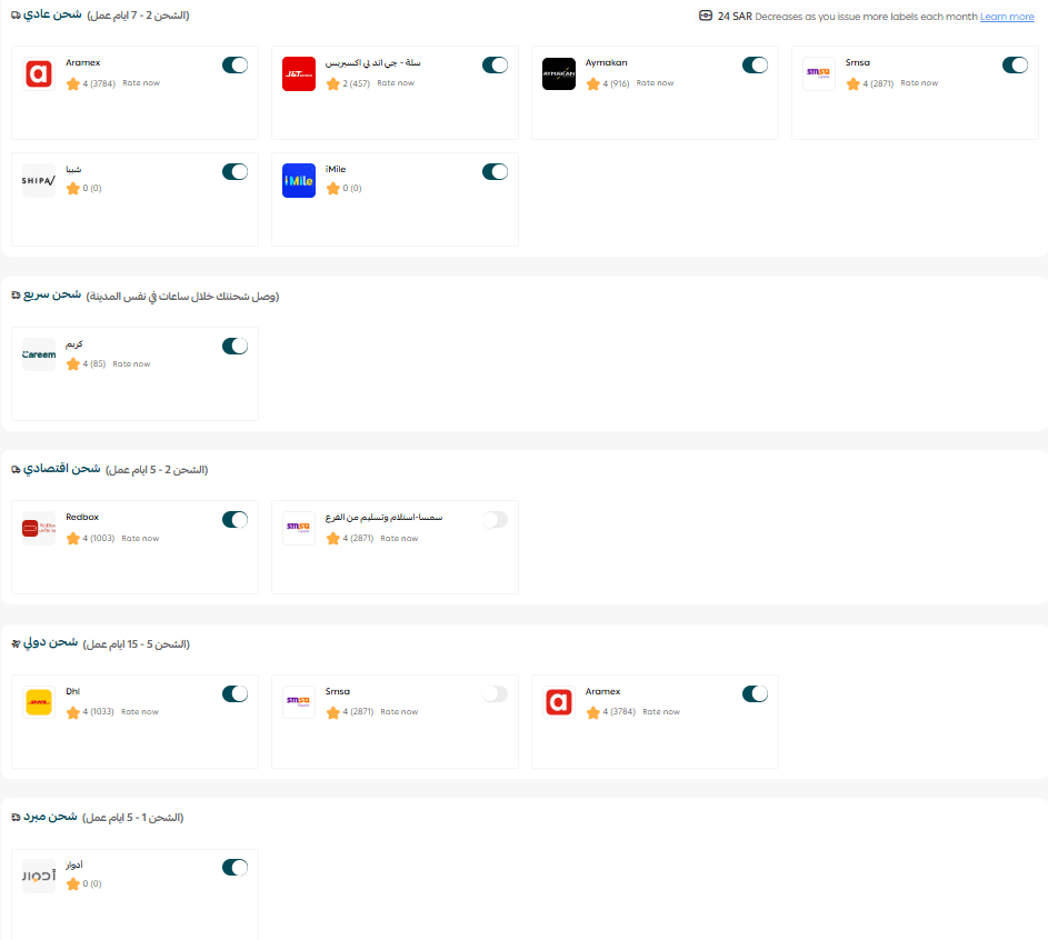 That’s why Salla Shipping Labels provides flexible shipping settings that allow you to activate carriers, customize pricing, and control how delivery options appear to your customers.