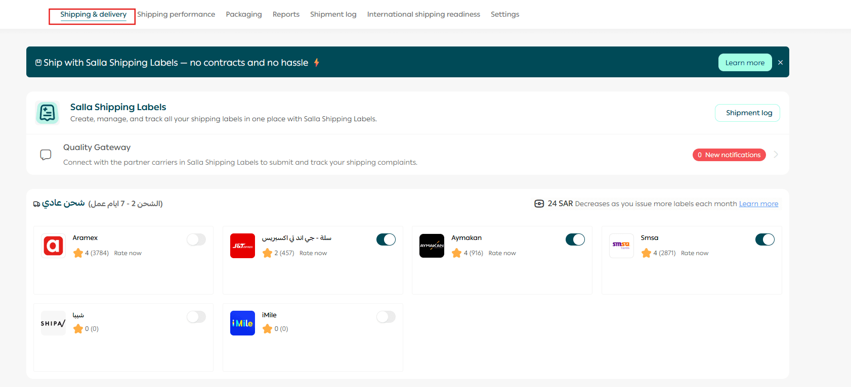 In this guide, you’ll learn how shipping company settings work inside Salla Shipping Labels and how to configure them for smoother operations and lower costs.