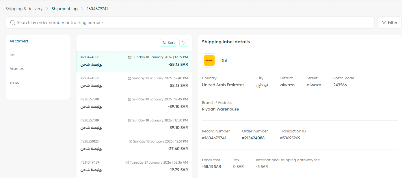 Important note: The shipping labels archive feature is currently available only for stores in Saudi Arabia.