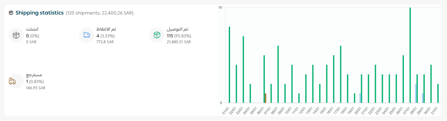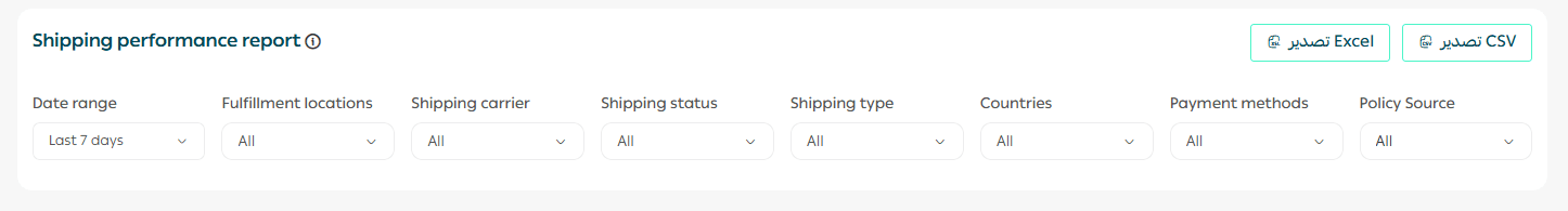 ✅ All reports displayed on the page apply exclusively to shipping companies operating through Salla Shipping Policies.