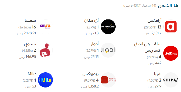 - SAR/AED 2178.91 – Total value of orders shipped via SMSA