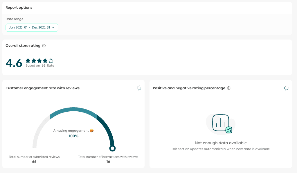 🎯 Rating Analytics provides a complete and detailed view of your store’s overall ratings.