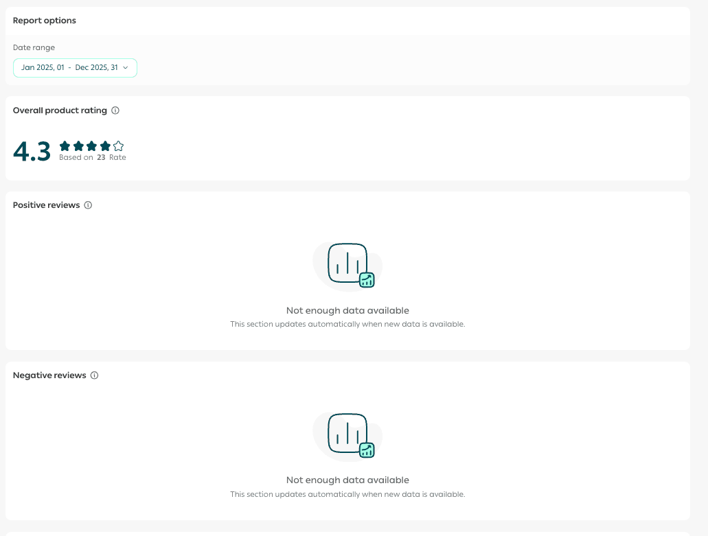For example, if analytics show higher positive ratings for skincare products during winter, merchants can increase inventory and prepare targeted campaigns before the season starts.