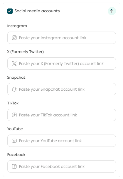 - Social media account links