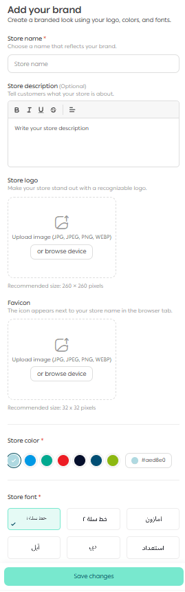 Enter your store branding details, including: