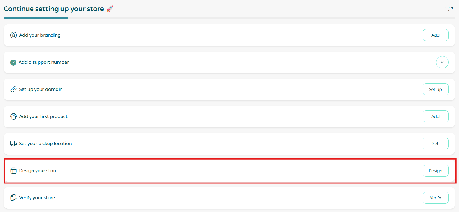 To complete your store design setup, click Store Design.