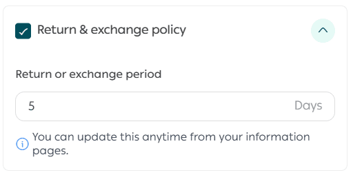 Enter the return/exchange period you want to display to customers, then click Save.