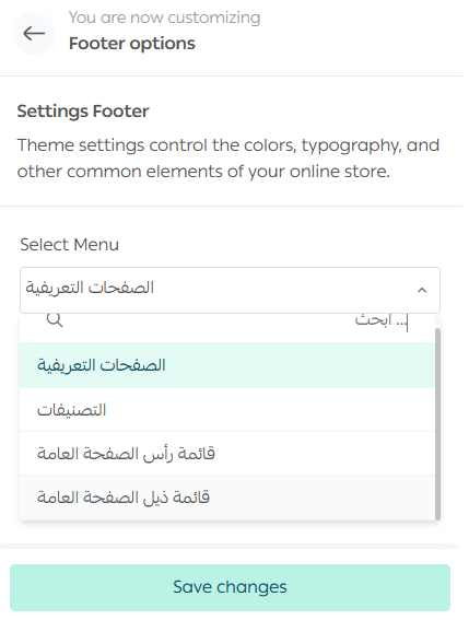 Select the menu you want to show in the footer, such as:
