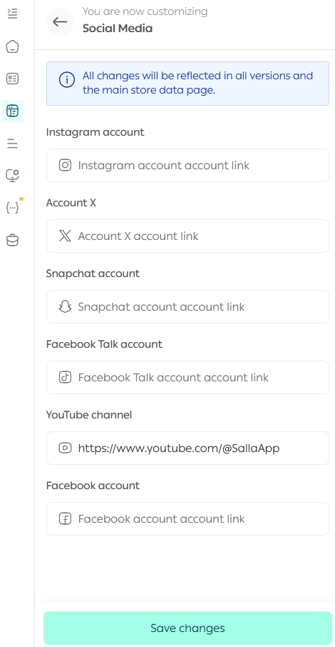 Display links to your store’s social media profiles in the footer to strengthen brand presence and customer trust.