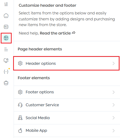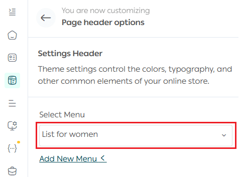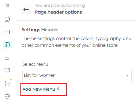 To customize the navigation menu in the header, click Header Settings.