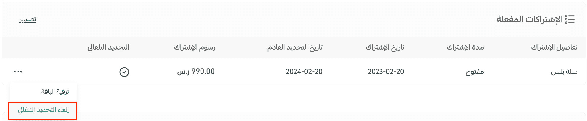 - In the Active Subscriptions section, click the three dots, then select Disable Automatic Renewal.
