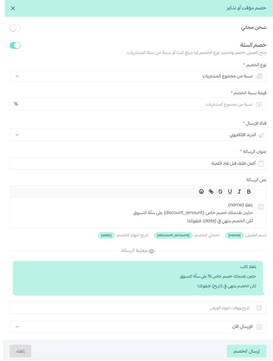 💡 Example: If your AOV is low, offer a conditional discount such as: “Get 30% off when your order exceeds SAR/AED X.”