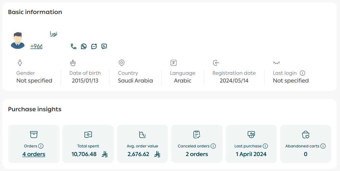 By analyzing order count and total spend, and using Salla’s messaging tools (such as campaign messages), you can target customers with the highest engagement.