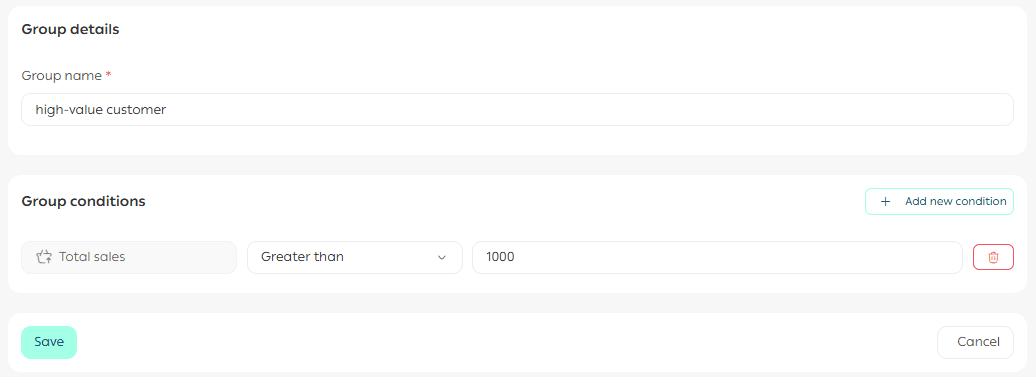 - Create a new customer group for customers whose total purchases exceed SAR/AED 1,000.