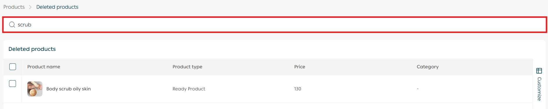 4. Search for a deleted product