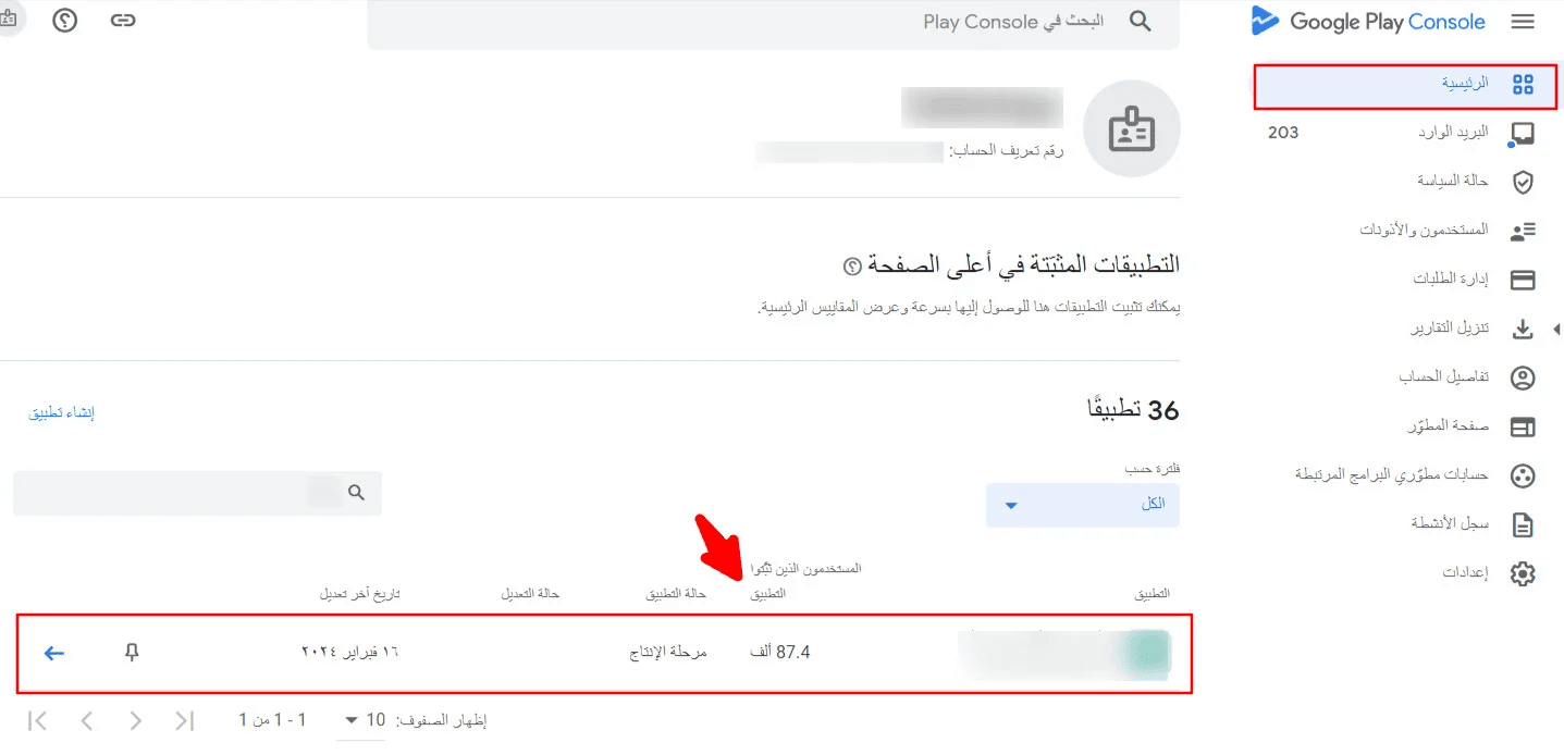 💡 Next to each app, Google Play Console shows an approximate total number of users, which gives you a quick snapshot of overall adoption.