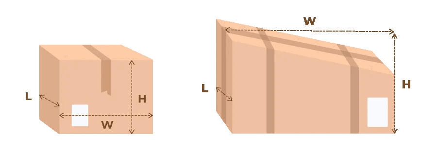 Using the longest point on each side of the package. These extra dimensions directly impact volumetric weight.