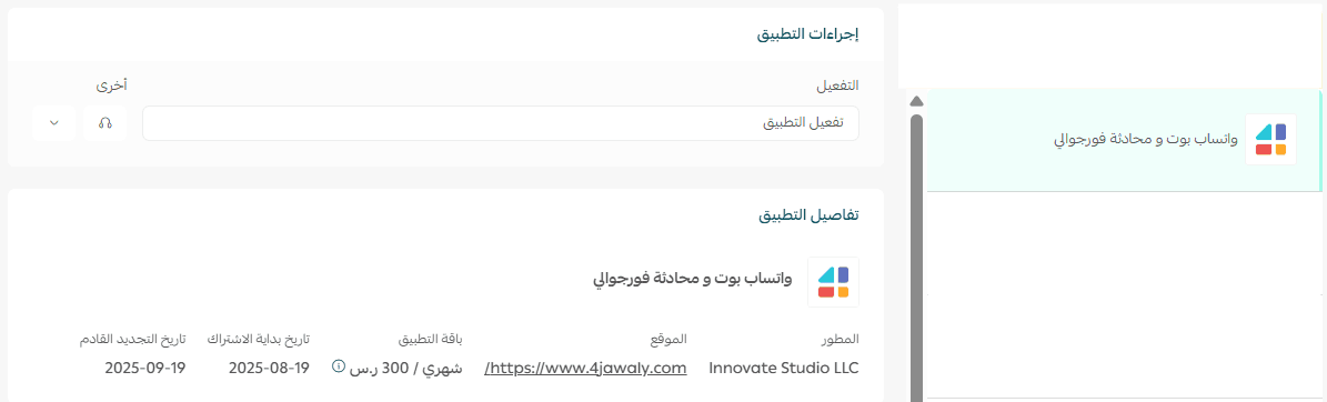 This article explains how to connect and manage the 4jawaly WhatsApp Bot & Chat app in your Salla store.