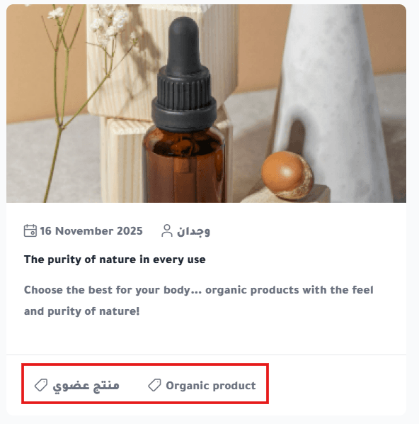The article tags will appear below the post, as shown: