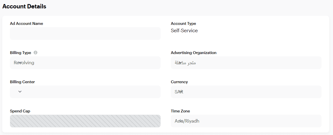 ⚠️ Important: The following settings cannot be changed after creating the ad account:
