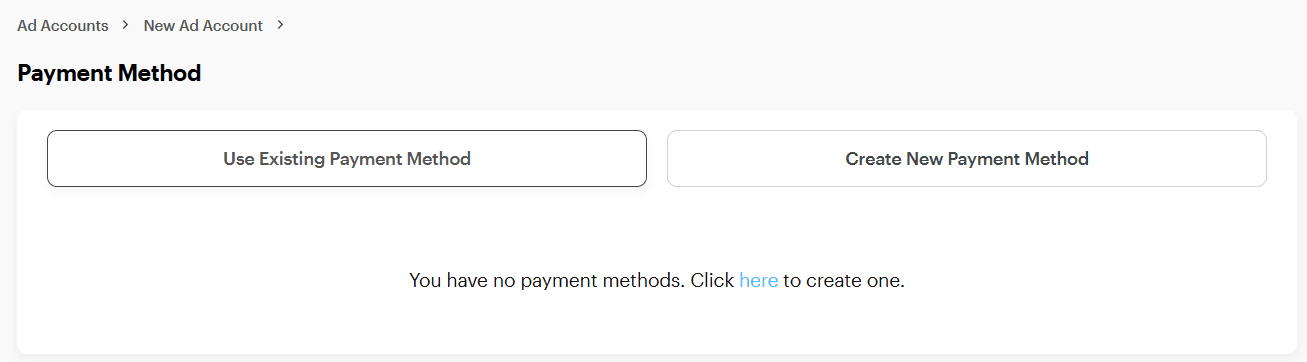 - Click Create Account. Your ad account will be created and available in the Ad Accounts section of Ads Manager. To start running ads, you’ll need to add a payment method. You can also add members to the ad account.