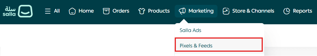 - From the main menu, click Marketing, then select Pixels & feeds.
